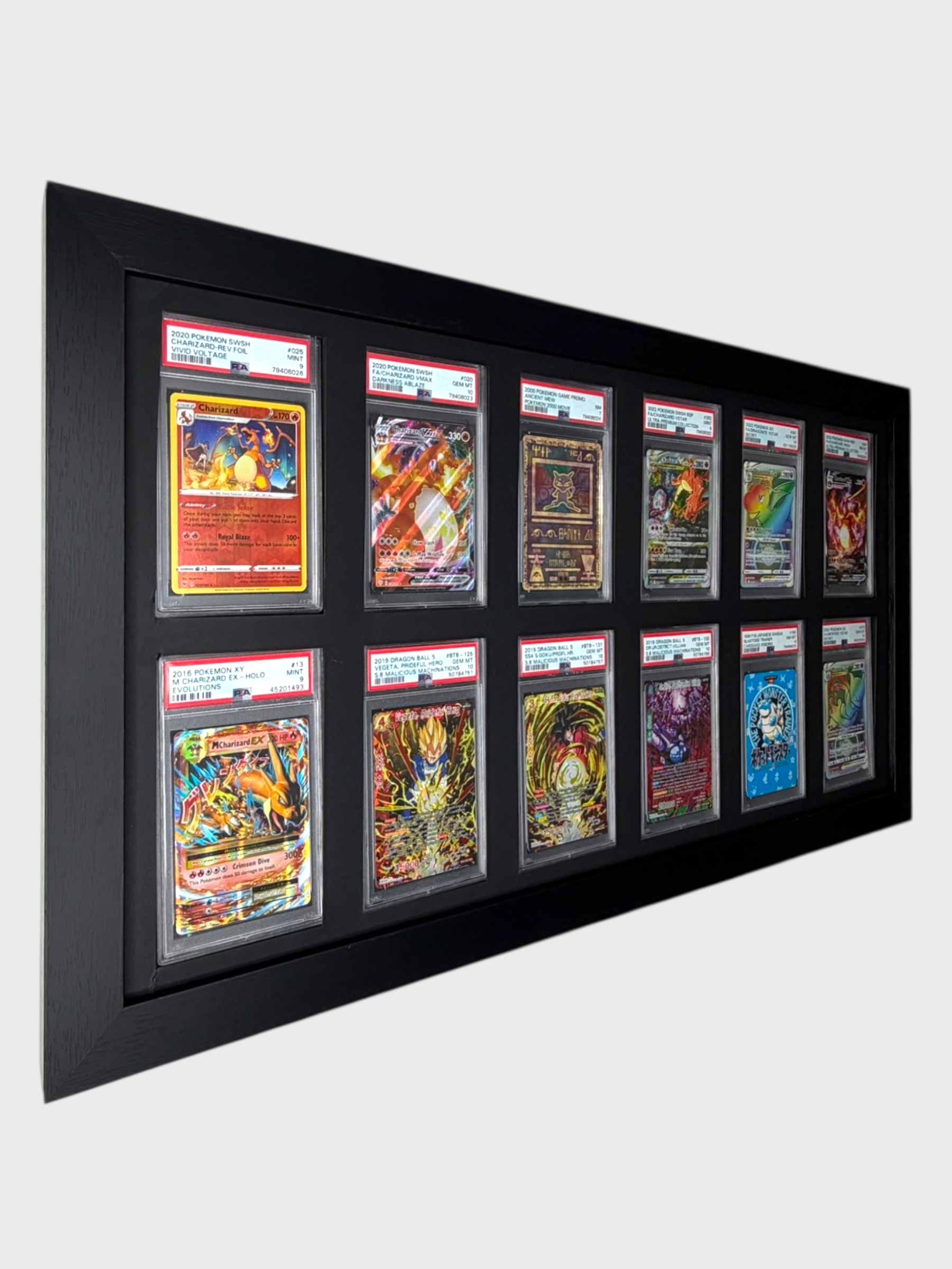 Introducing the PSA Card Wall Frame, a perfect display solution for your prized collectible trading cards. This sleek and stylish frame is designed to showcase your PSA-graded cards in all their glory, adding a touch of elegance to any room.