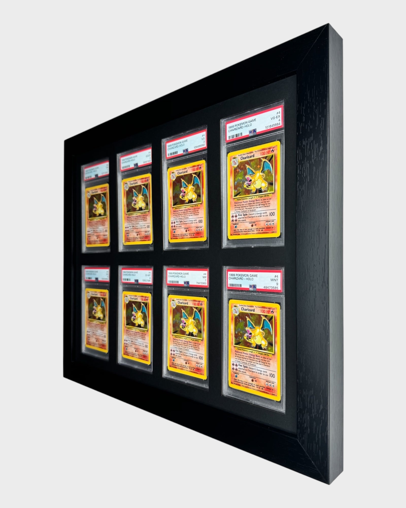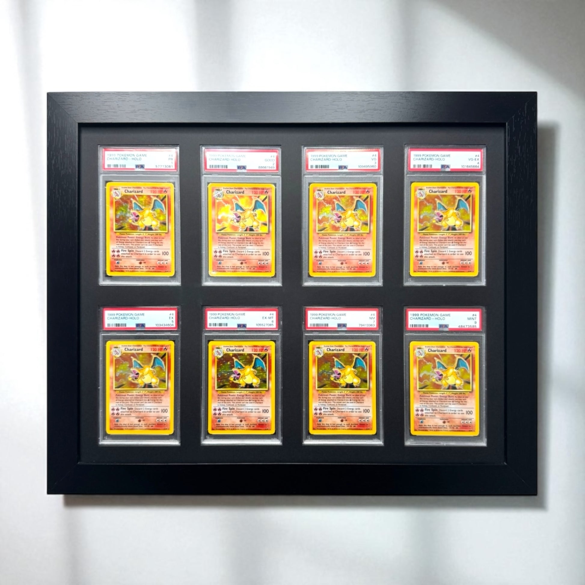 Introducing the PSA Card Wall Frame, a perfect display solution for your prized collectible trading cards. This sleek and stylish frame is designed to showcase your PSA-graded cards in all their glory, adding a touch of elegance to any room.
